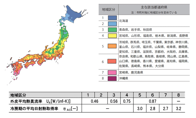 東京のような本州の最も一般的な地域では、0.87W/m²Kという数値を下回る断熱性能を有する必要があります。