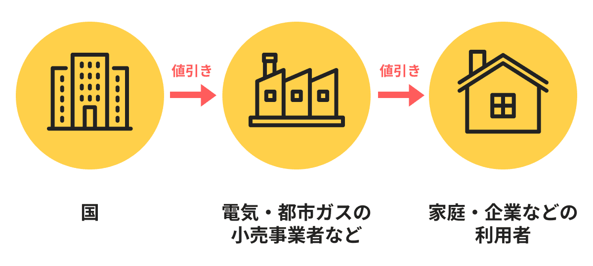夏に行われた「電気・ガス料金支援」と同様に、私たちが手続きをする必要はありません。電力会社・ガス会社が請求額から自動的に値引きを行います。