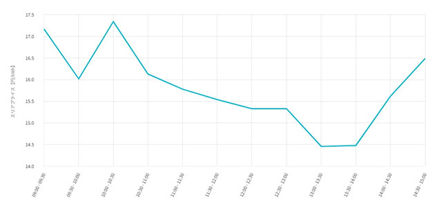これは2023年12月1日に実際に取引された9時~15時までの12コマの電力の売電単価をグラフでまとめたものとなります。