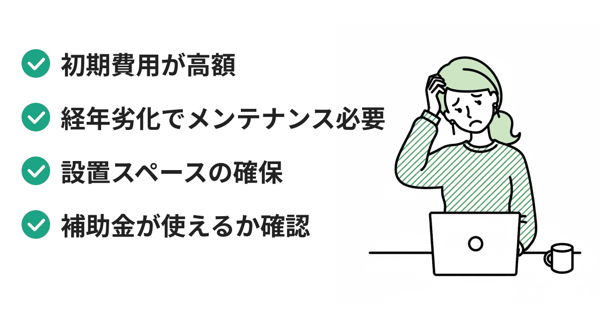 多くのメリットがある一方で、蓄電池の導入には無視できない注意点もあります。後悔しないために、注意点も正しく理解しておきましょう。