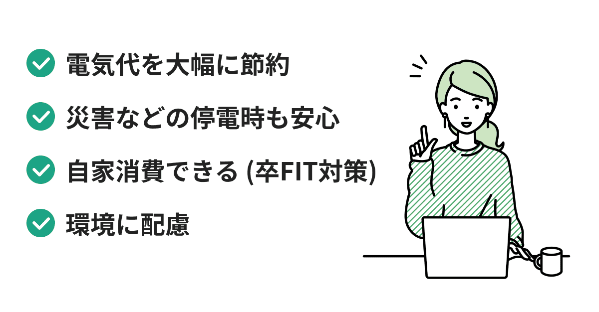 まずは、蓄電池を導入することで得られる4つのメリットから見ていきましょう。
