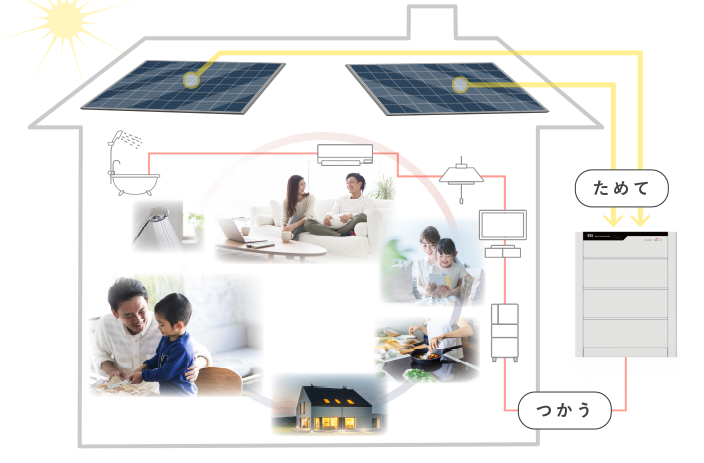 - 太陽光発電の余剰電力は蓄電池へ充電優先にする「自家消費モード」