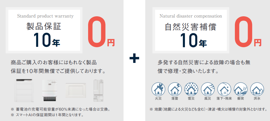 ※蓄電池・PCS・スイッチボックスが対象(スマートAIは1年保証)