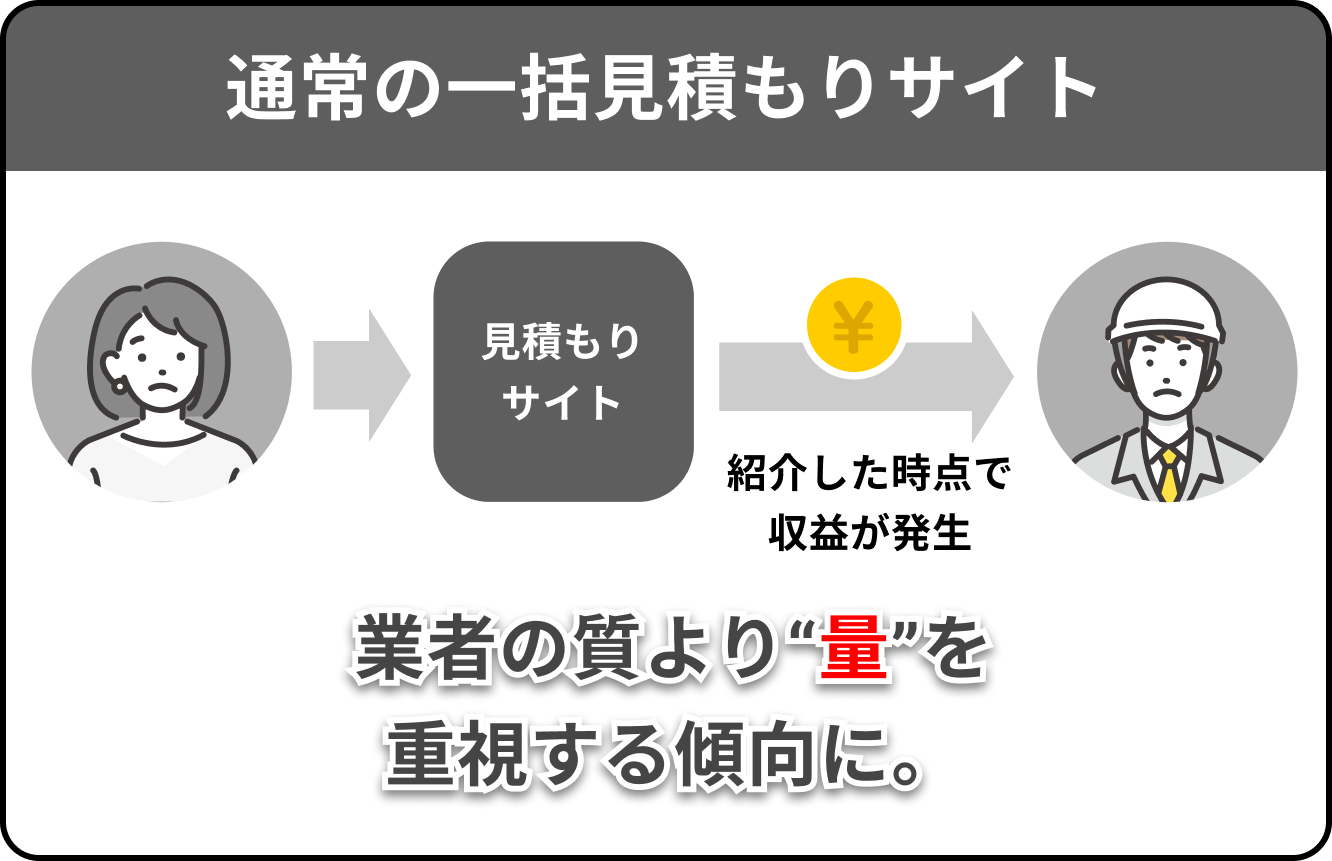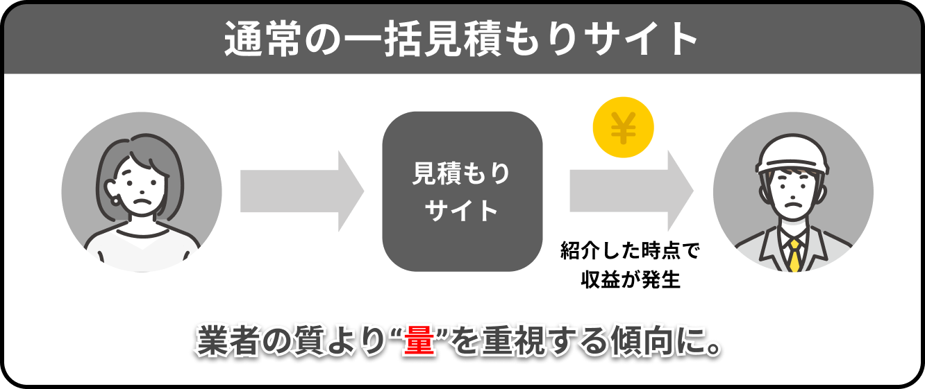 施工実績、アフターサポート、顧客対応など、独自の基準をクリアした優良施工店のみをご紹介。悪質な業者は事前にフィルタリングしているので安心です。