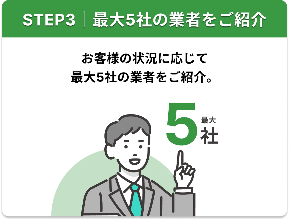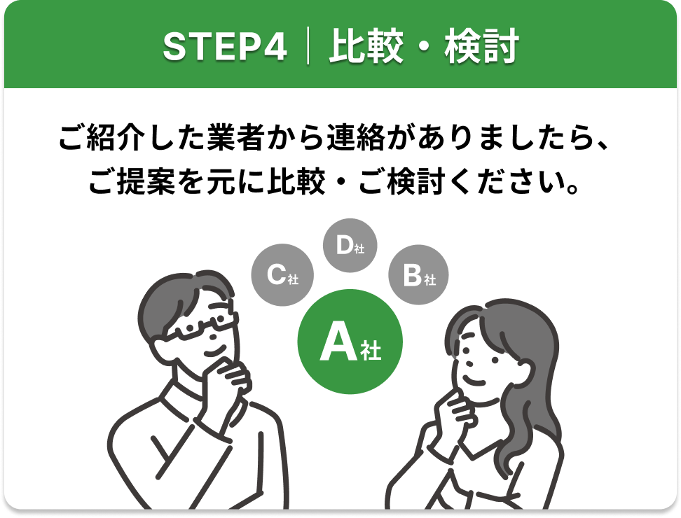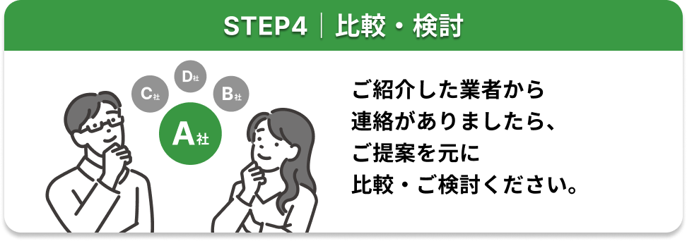 自分で業者を探す手間を省き、信頼できるパートナーと出会えます。