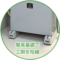 簡易基礎でも設置可能で、基礎工事の工程を大幅にカット。実際に使用するま でにかかる時間を短縮し、より早く蓄電池をお使いいただけます。