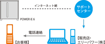 蓄電システムを安全にご使用いただくために「パワーイエ6 ごあんしんサービス」をご用意しています。システムの稼働状況をモニターし、万が一異常が見受けられる場合には、弊社または販売店よりお客様へ、電話による運転状況の確認作業を行っています。またシステムのソフトウェアのアップデートを行います。
