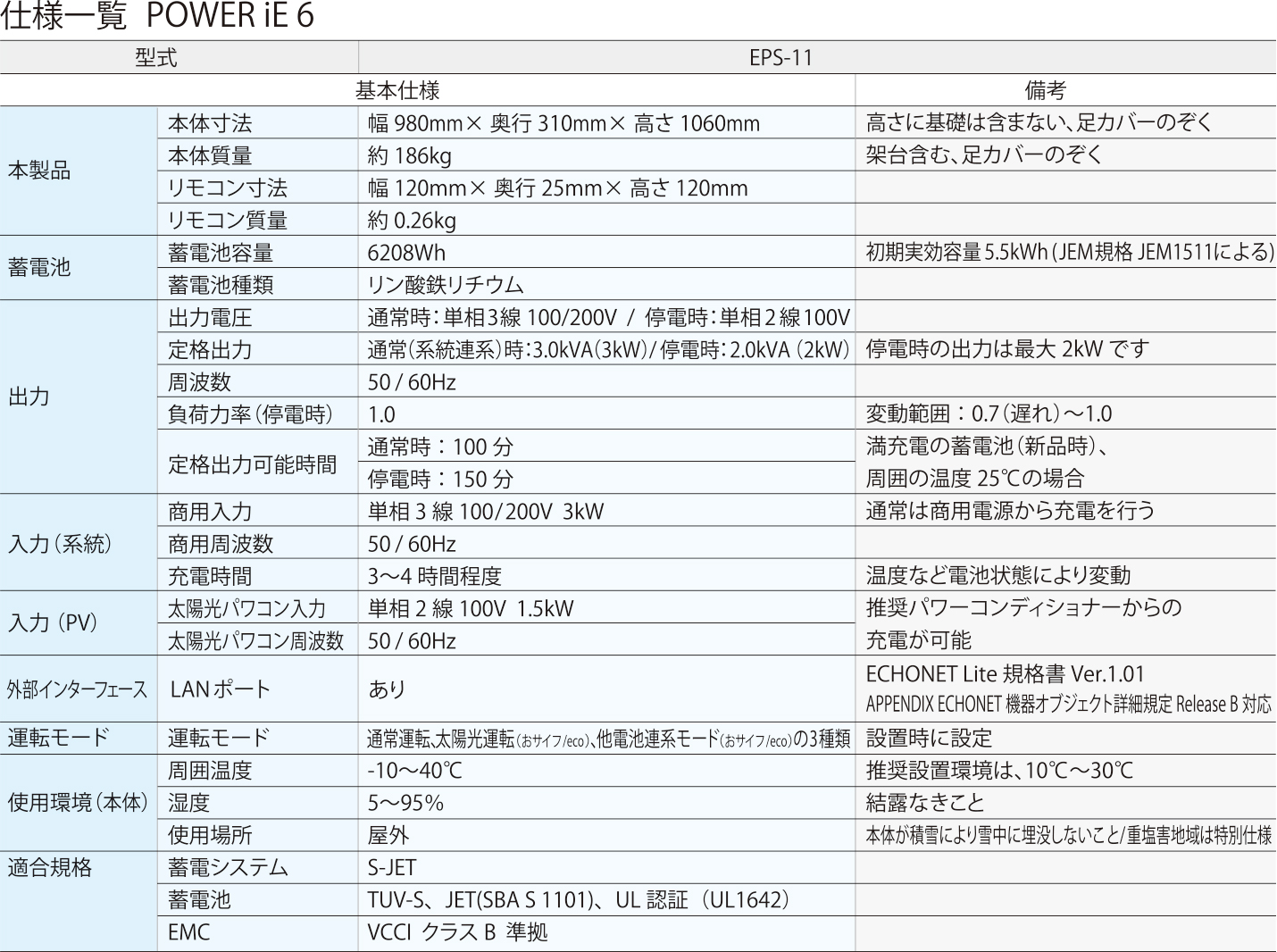 大容量(6.2kWh)・大出力(3.0kW)