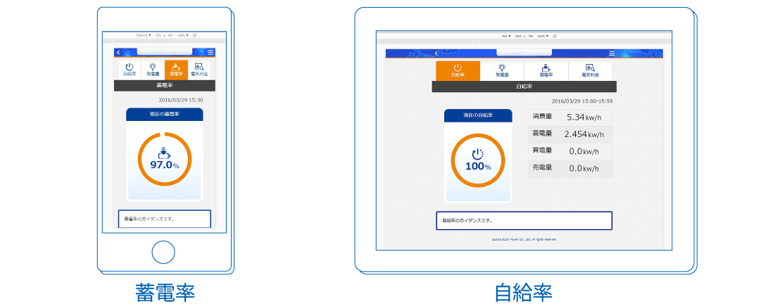 クラウドサービス「エリークラウド」で、蓄電率や電力履歴もひと目でチェック