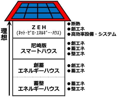 制度概要 | 尼崎市では、温室効果ガスを効果的に削減でき、住みやすく環境にやさしい住宅である、ZEH(ゼッチ=ネット・ゼロ・エネルギー・ハウス)や尼崎版スマートハウスを市域に普及させることを目的とし、本補助事業を行います。(事業開始 平成31(2019)年度から) ![]() スマートハウス補助申請にかかる全ての機器の設置後に申請してください。尼崎版スマートハウスの普及を目指し、尼崎市内の住宅にスマートハウス関連機器を導入した場合、補助します。(住宅は、新築・既築・建売が対象です)機器の組み合わせによってはスマートハウス加算により、補助額を増額します。 ZEH(ゼッチ)補助工事の着工前に申請してください。尼崎市内のゼロエネルギーの住宅に対し、補助します。国のZEHとは異なり、要件を満たせばZEHビルダー以外の施工であっても申請できます。 補助対象者新築・既築・建売の住宅に、補助対象機器を設置していることが条件となります。補助を受ける前に、「事業要綱」をご確認ください。 新築・既築・・・市民(ZEH補助については、転入予定者も申請できます) 補助金について機器については、下表の蓄エネ、整エネ機器に対して補助を行います。創エネ機器については、補助対象機器と同時導入した場合に限り、「スマートハウス加算」の対象となります。本事業は、一住宅につき一度のみの補助です。 |